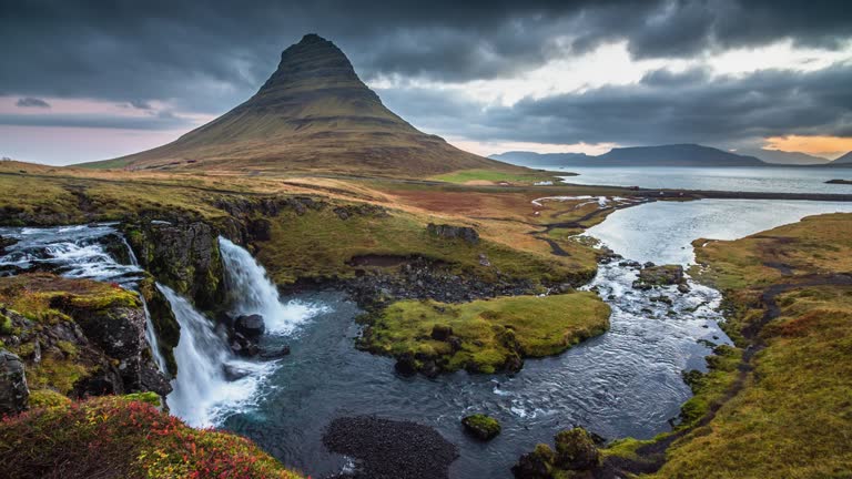 Iceland is a volcanic arctic region, with mild summers and cold winters. The incredible 3,700 miles of coastline is surrounded by wide grassy basins, volcanic mountains, and glacial lakes. It’s the perfect place for hiking along fields covered in purple lupines.